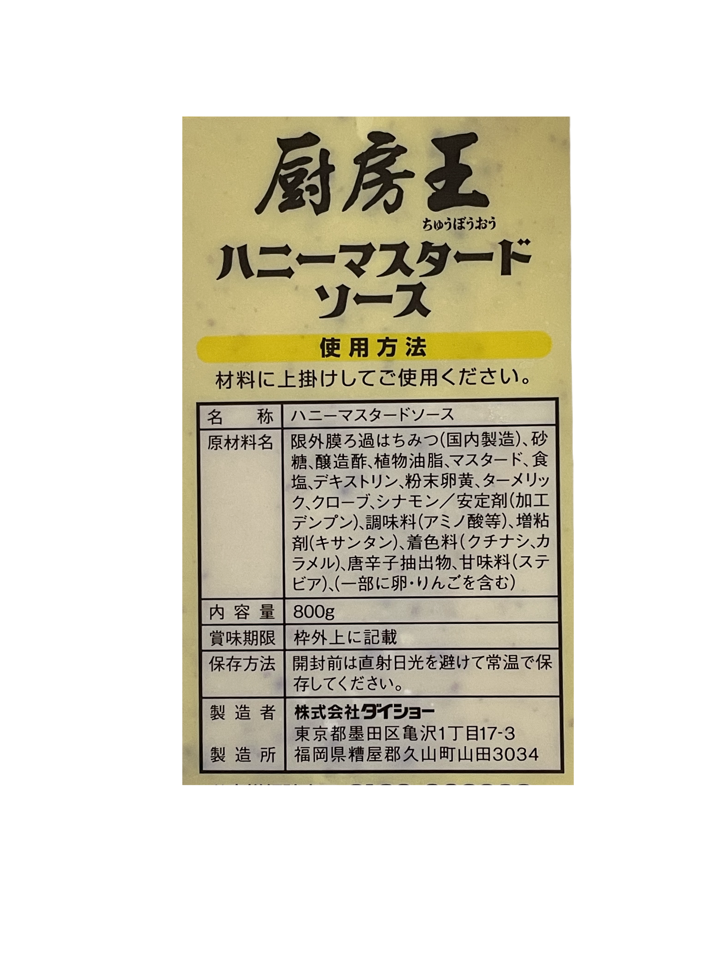 ダイショー ハニーマスタードソース 800g