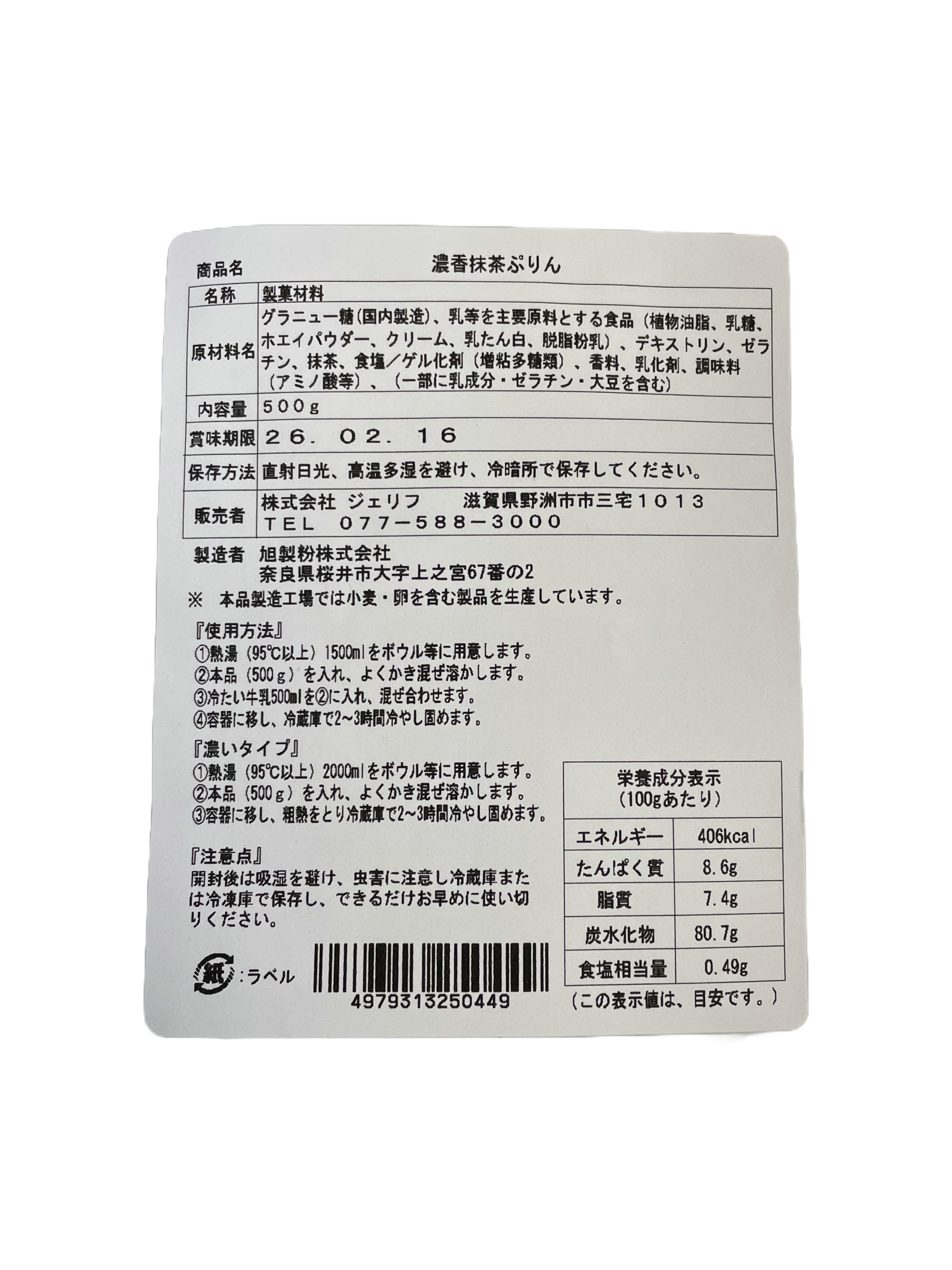 ジェリフ 濃香抹茶ぷりん 抹茶プリンの素 500g