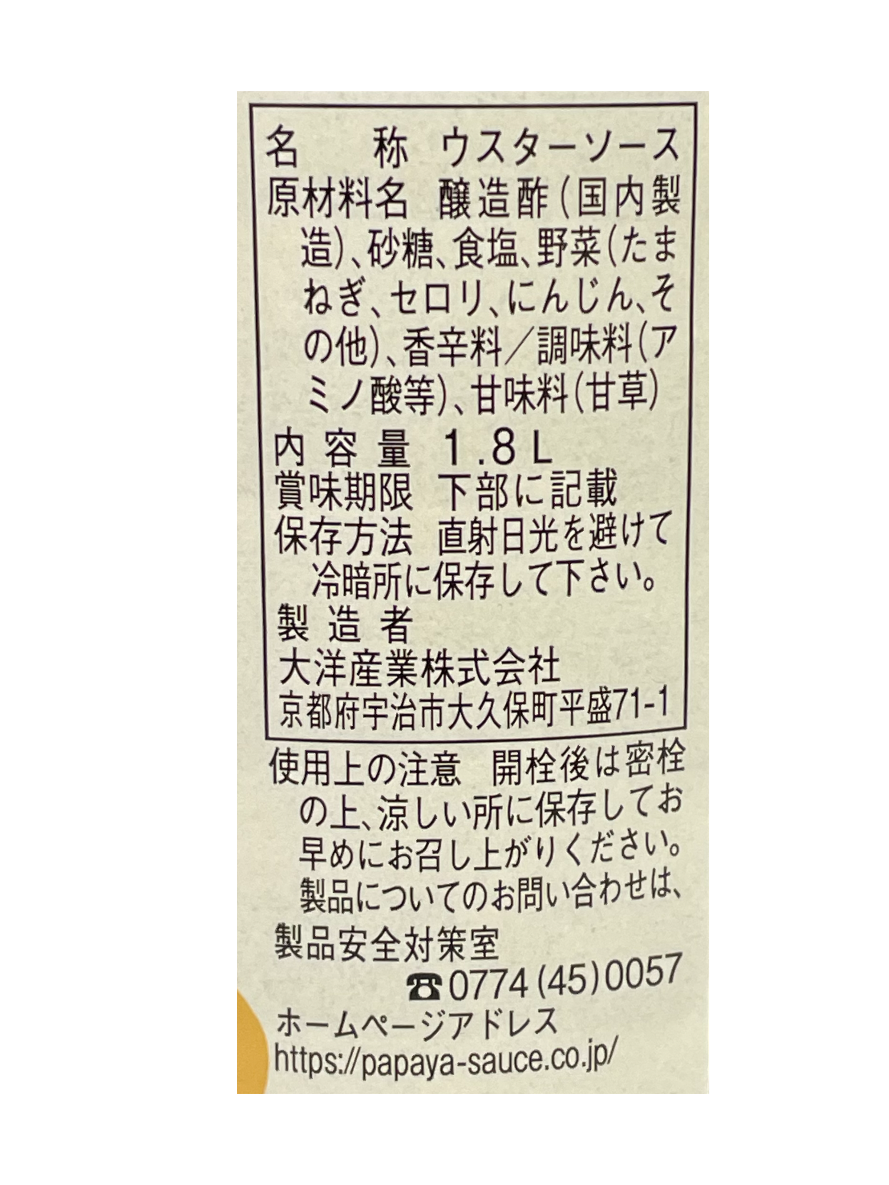 大洋産業 パパヤソース ウスター 1.8L