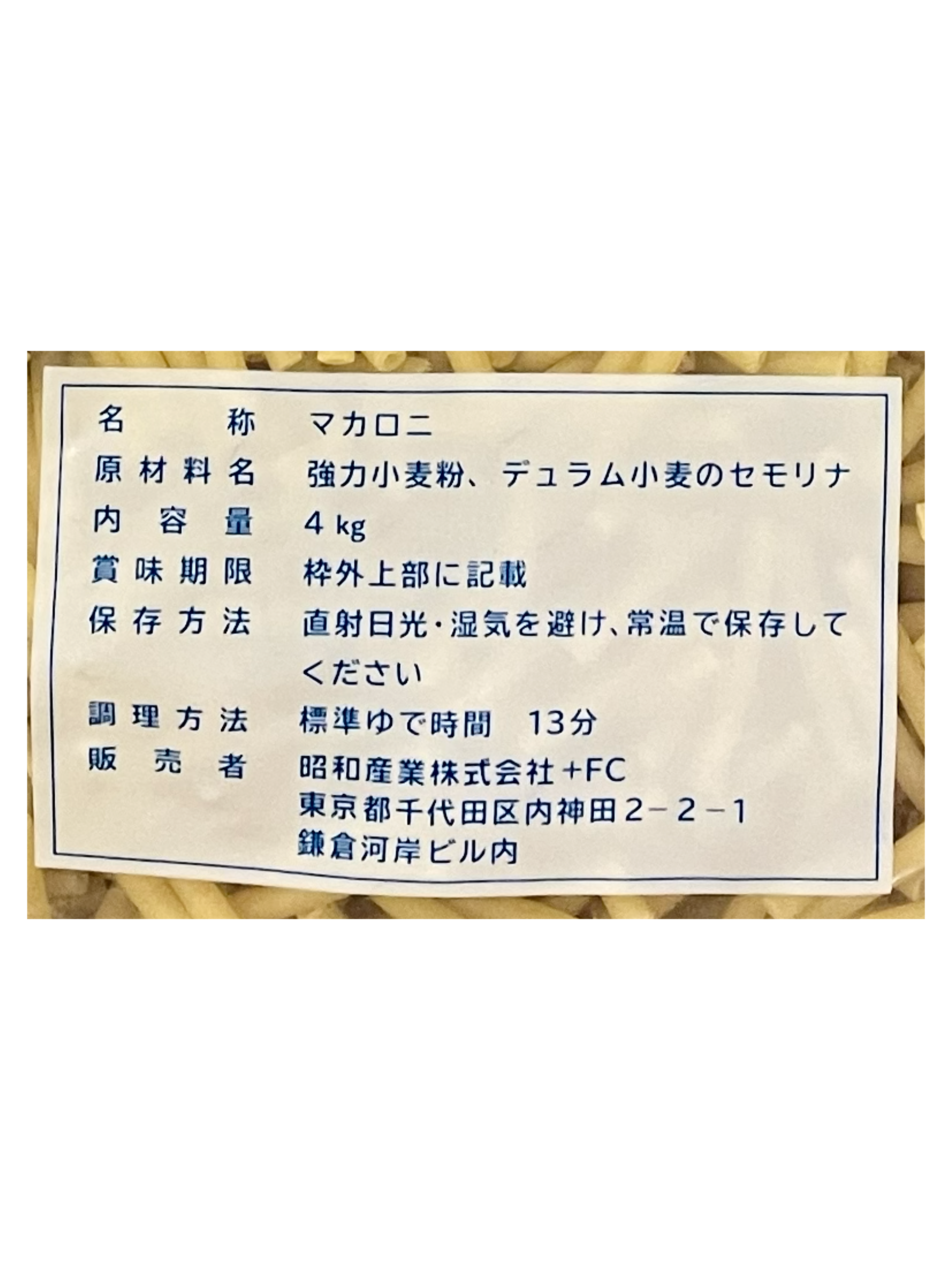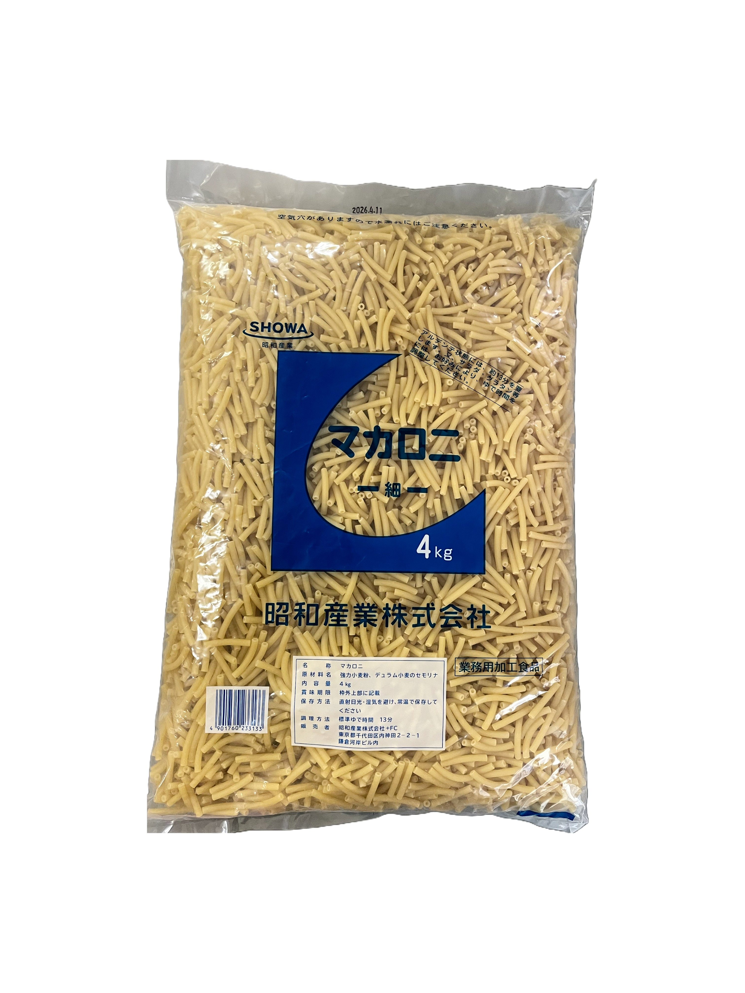 昭和産業 マカロニ-細- 4kg